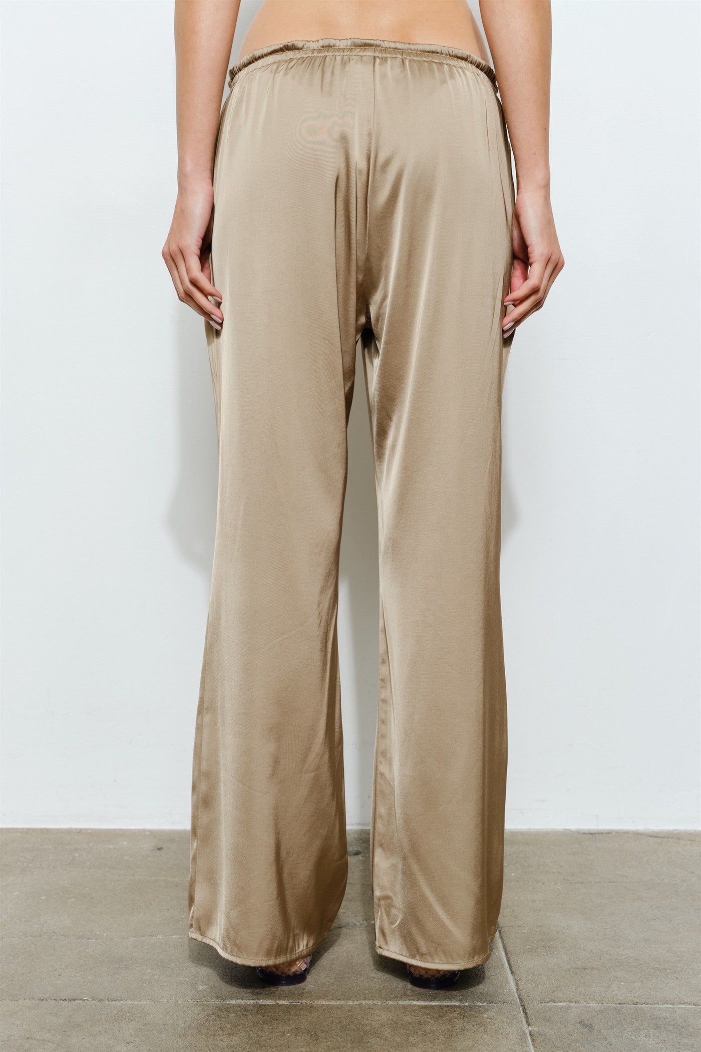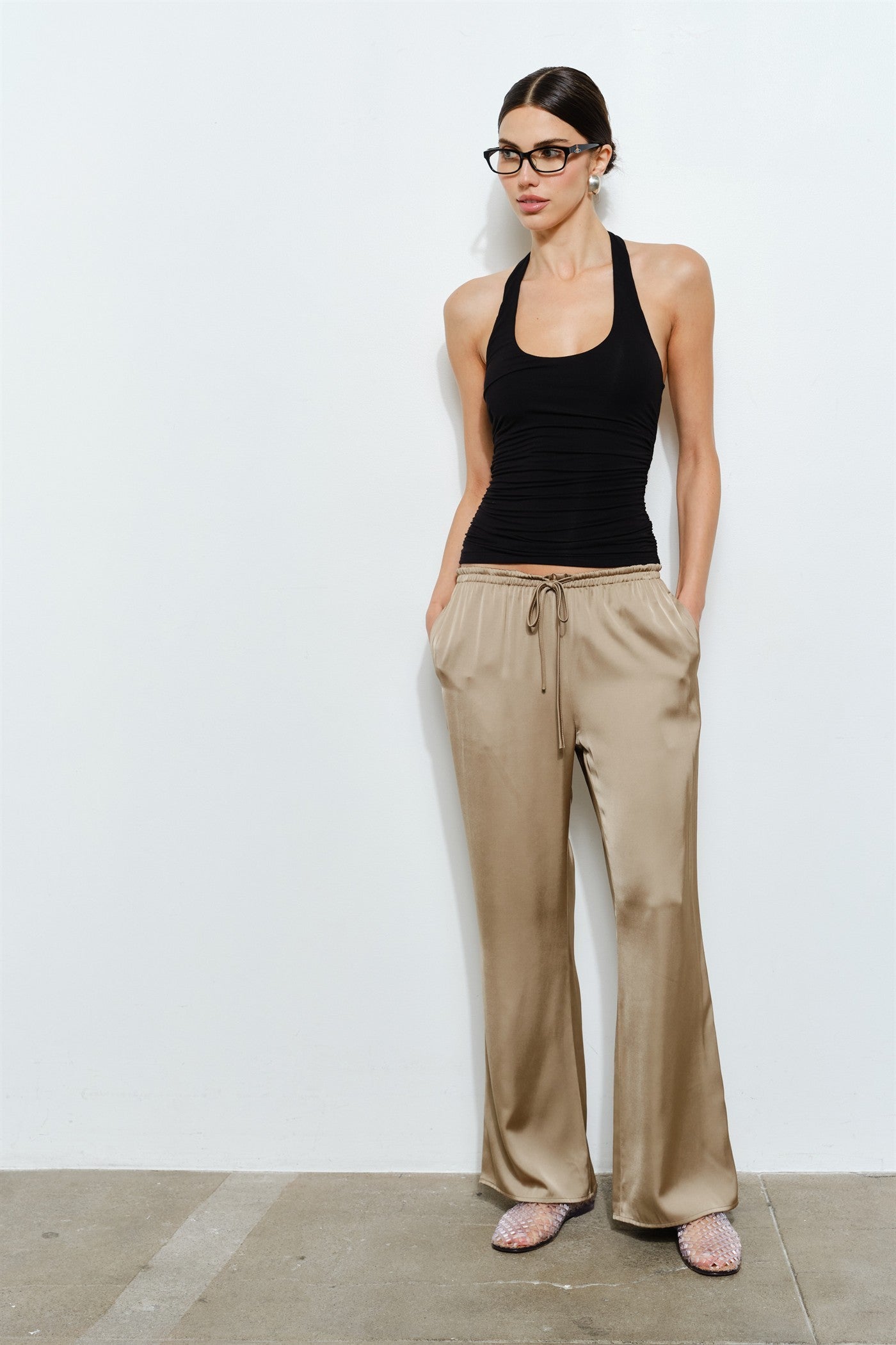 The Evie Pants bring together comfort and style, perfect for both lounging and going out. Made from smooth satin with a subtle sheen, they feature an easy relaxed fit and an adjustable drawstring waist for all-day comfort. Pair them with your favorite top or the matching set for a chic, effortless look.