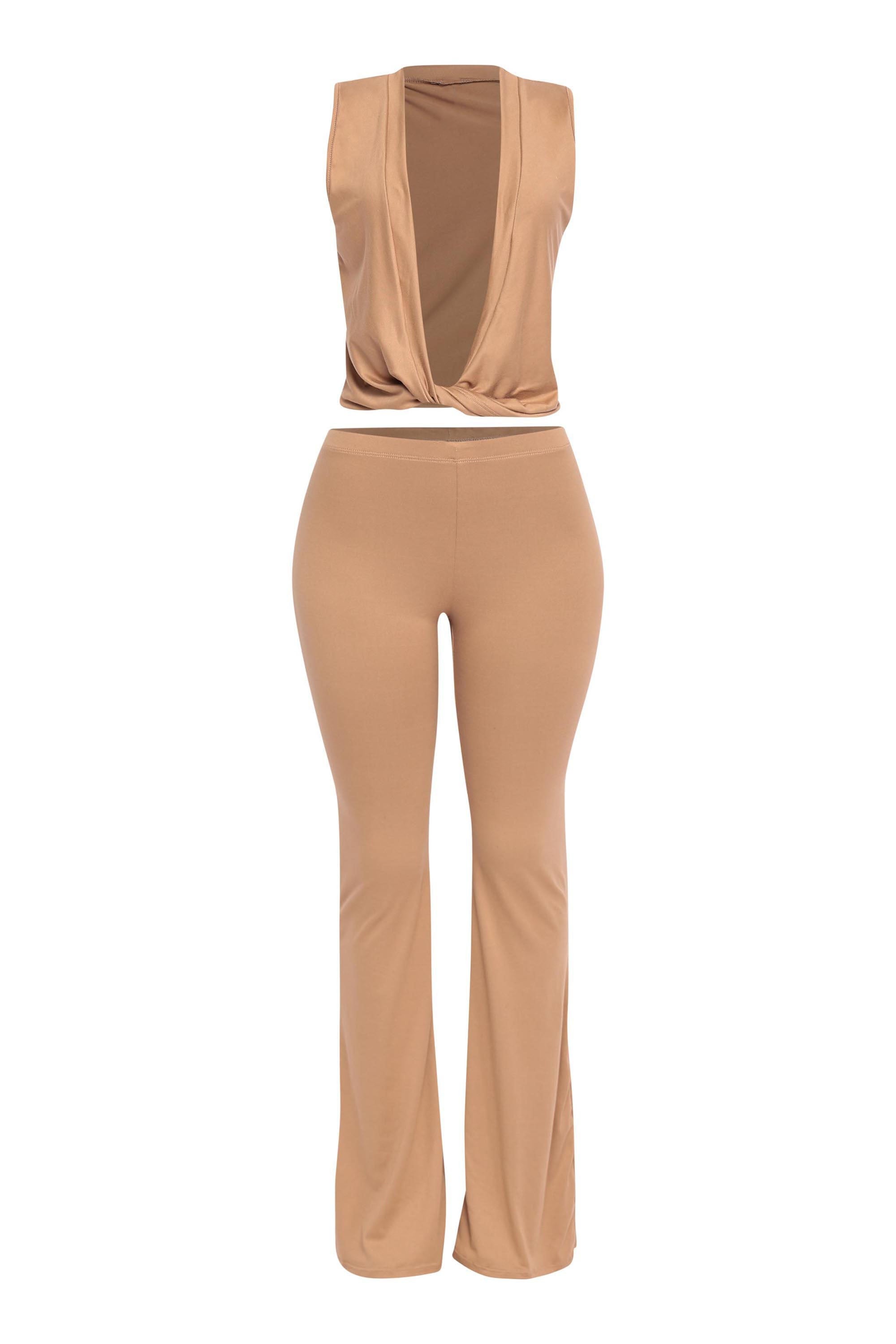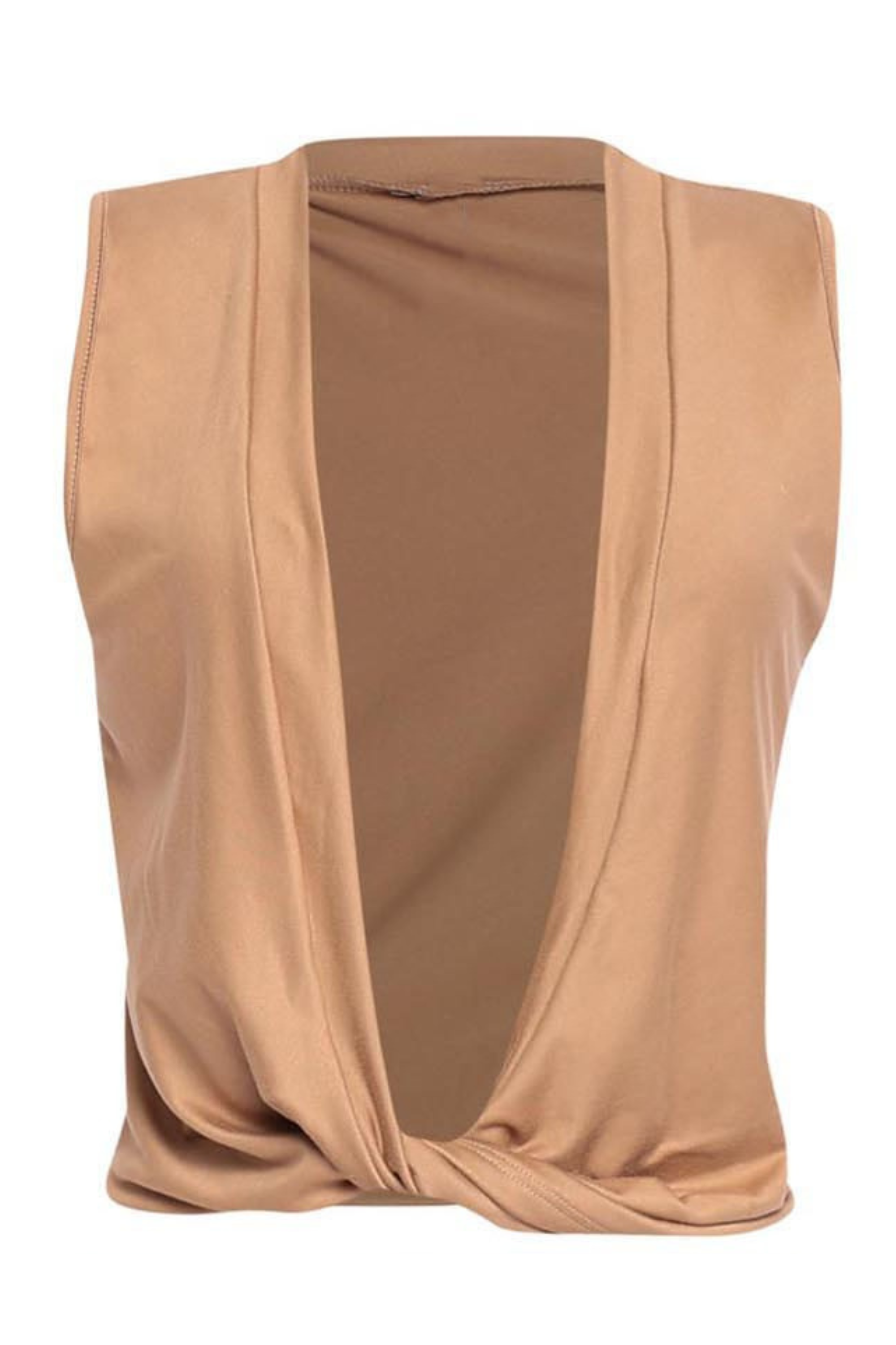Draped sleeveless top with a plunging neckline and twist front detail. Made from a soft, stretchy knit that moves with you and hugs the body just right. Simple but statement — perfect for dressing up or down.