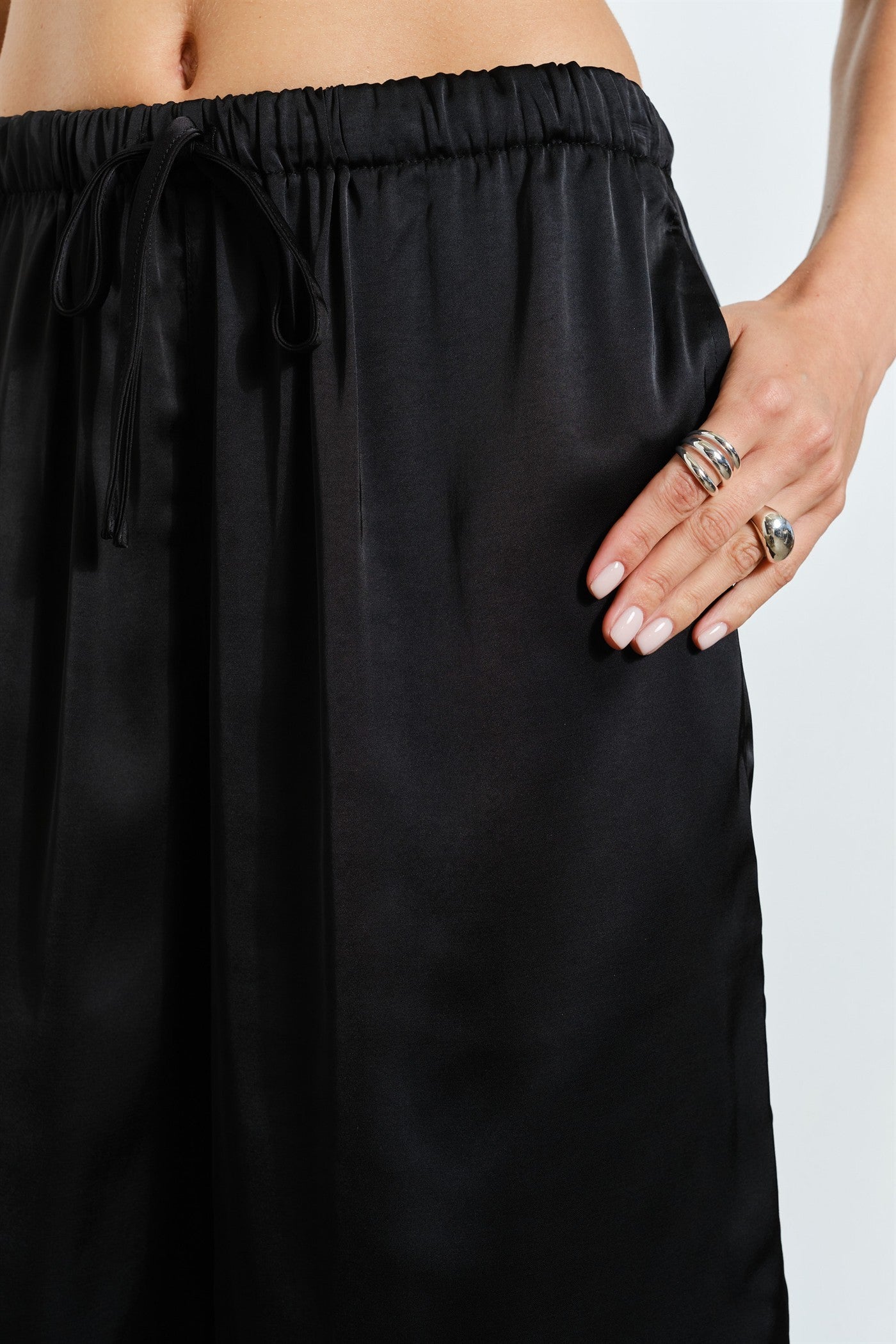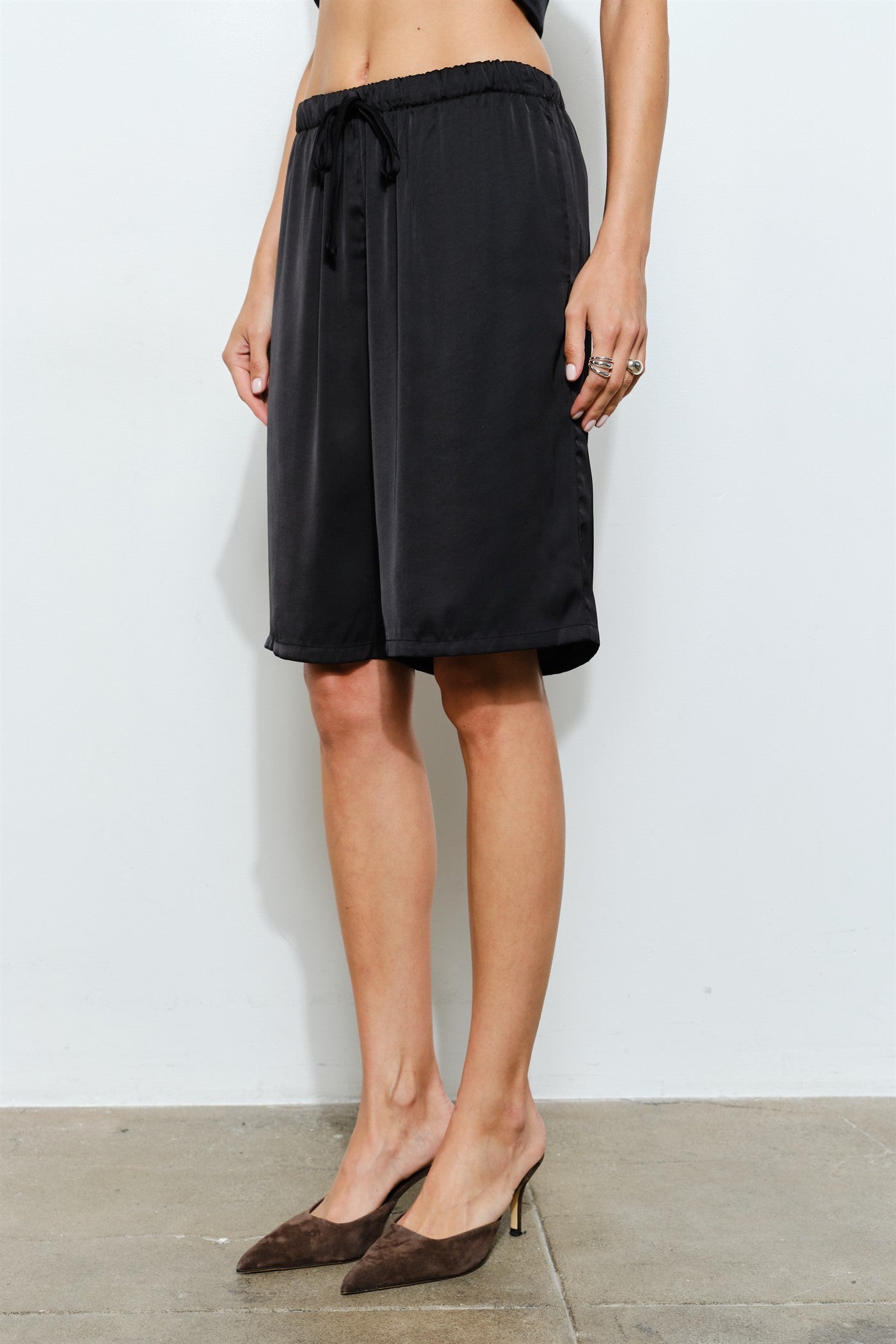 The Sabrina shorts are designed for effortless sophistication and comfort. Crafted from a luxe satin blend, they feature a relaxed longline cut with a comfortable drawstring waistband and practical side seam pockets. Perfect for lounging or styling up for everyday wear.