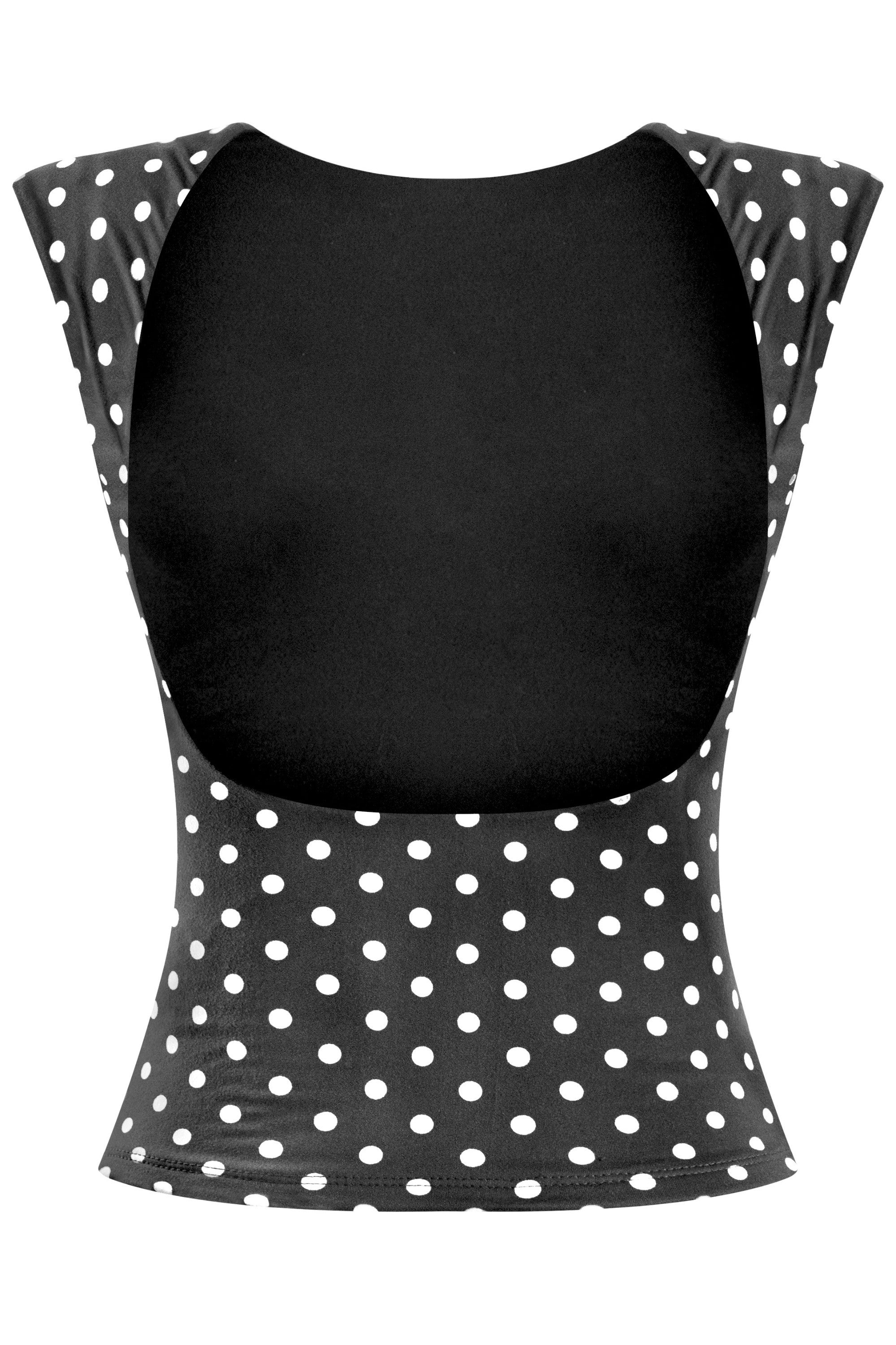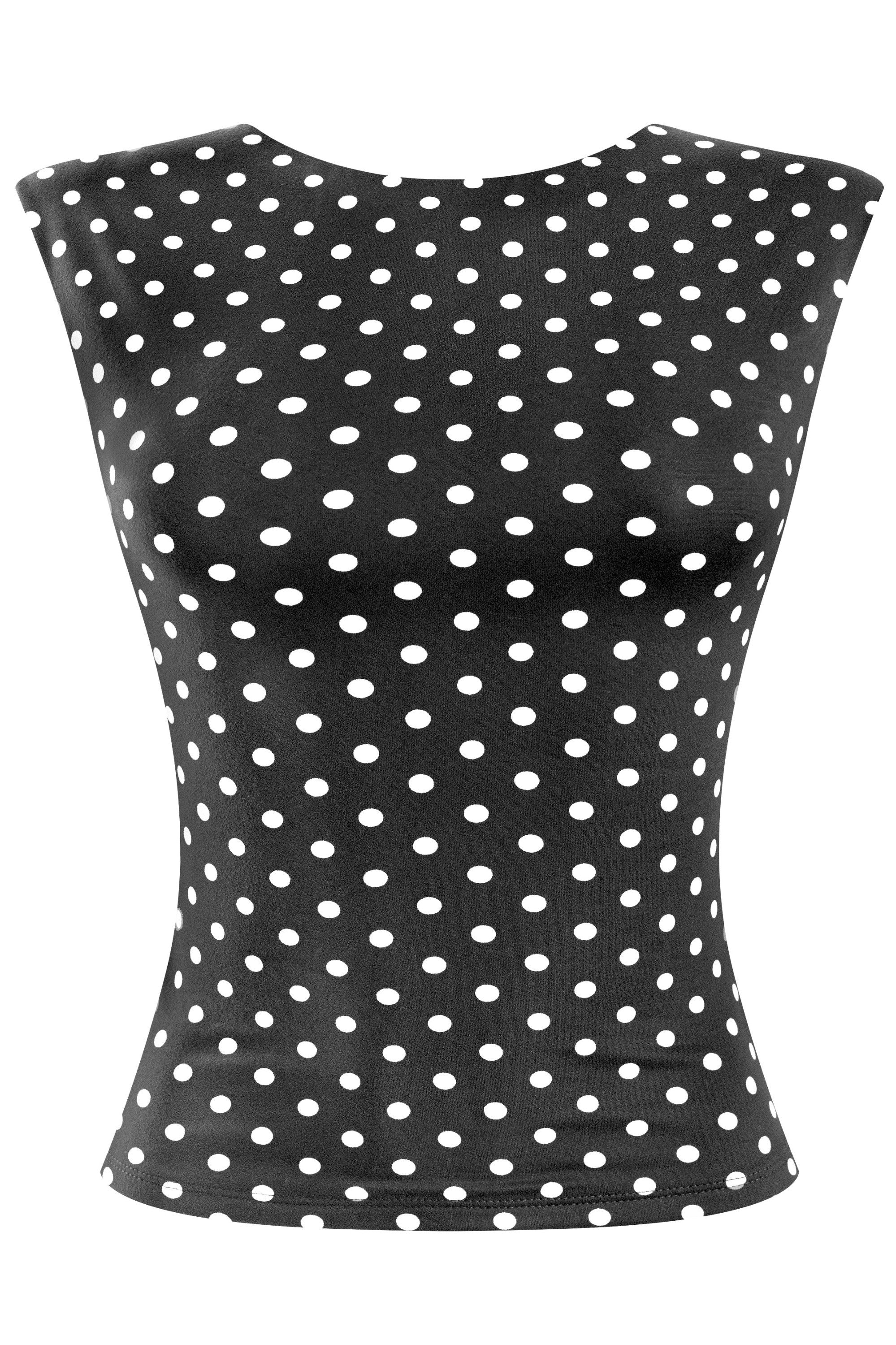 Flirty and versatile, this polka dot top is designed with a cropped length and open back for a playful yet chic look. Featuring cap sleeves, a scoop neckline, and buttery soft fabric, it’s double layered for comfort and stretch. Perfect for pairing with skorts, skirts, or denim, this piece transitions seamlessly from day to night.
